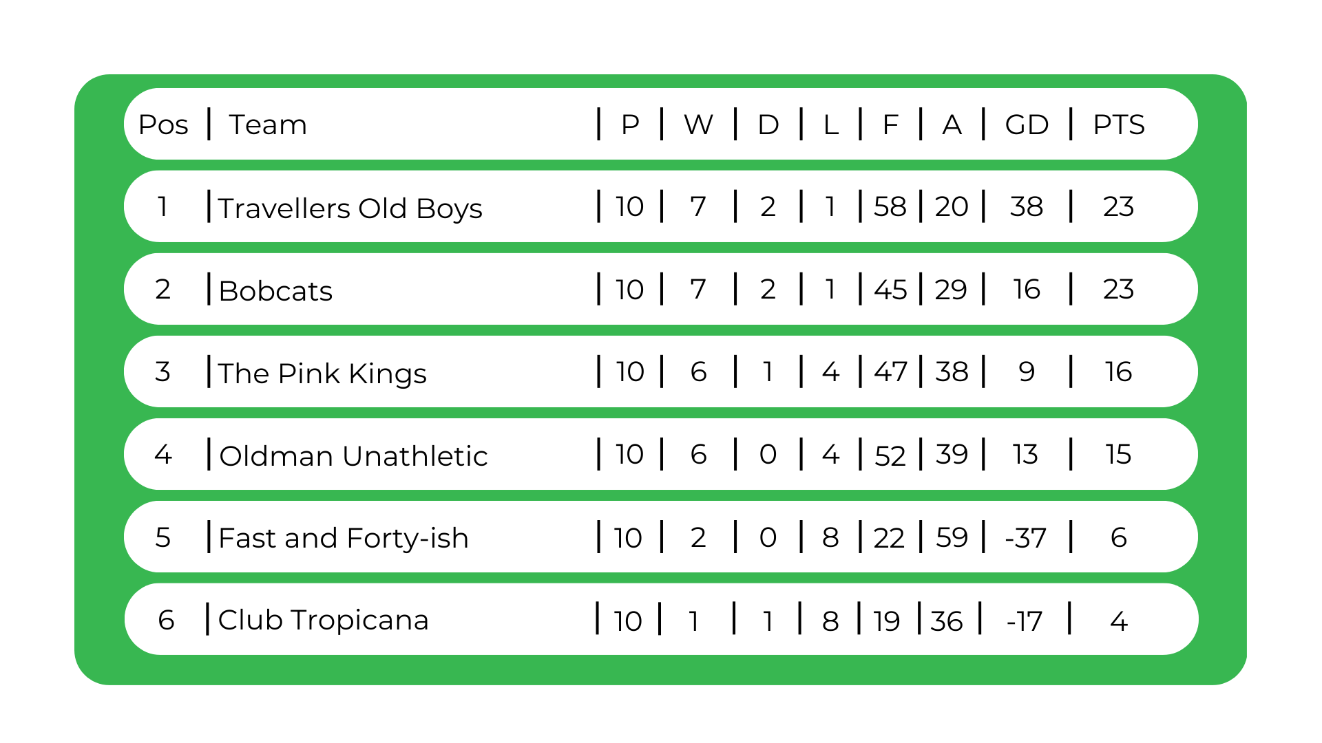 - If a team is unable to fulfil a fixture, they must contact the league organiser at least 48 hours before the fixture is expected to take place.